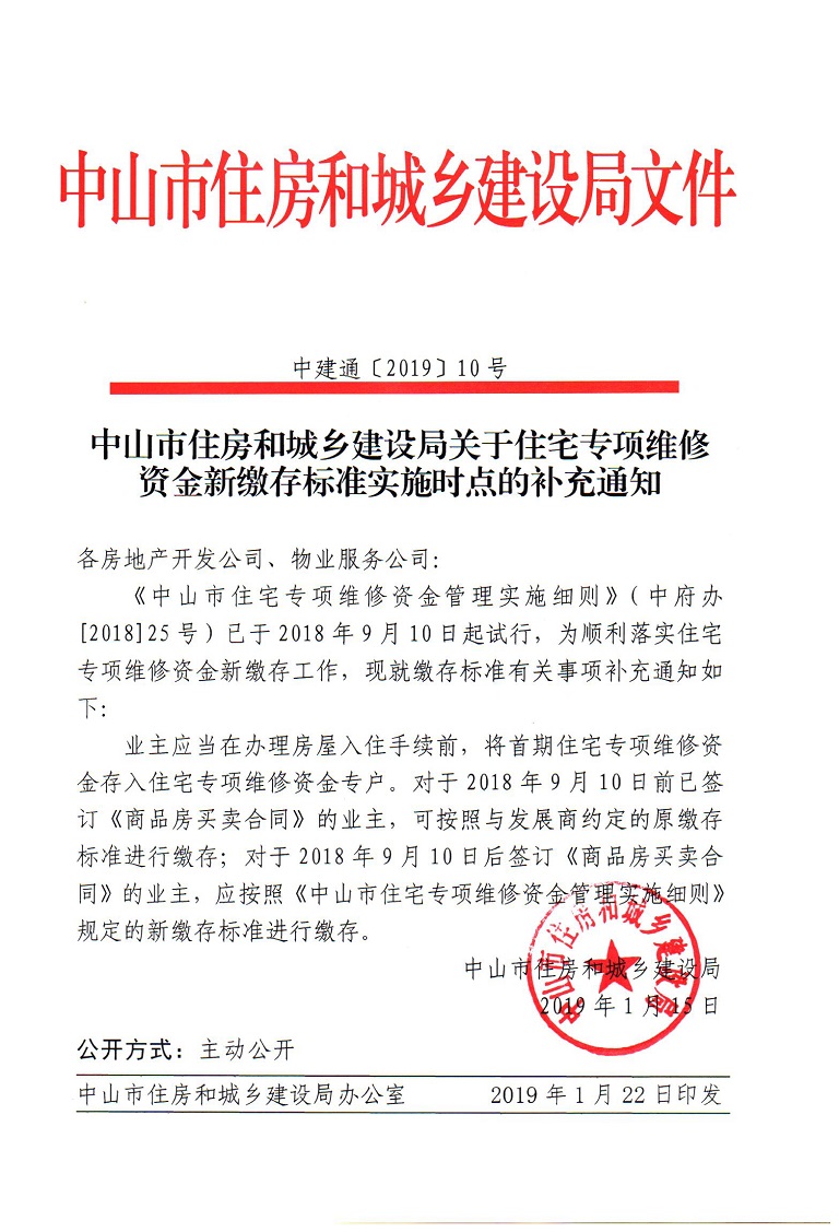 关于住宅专项维修资金新缴存标准实施时点的补充通知