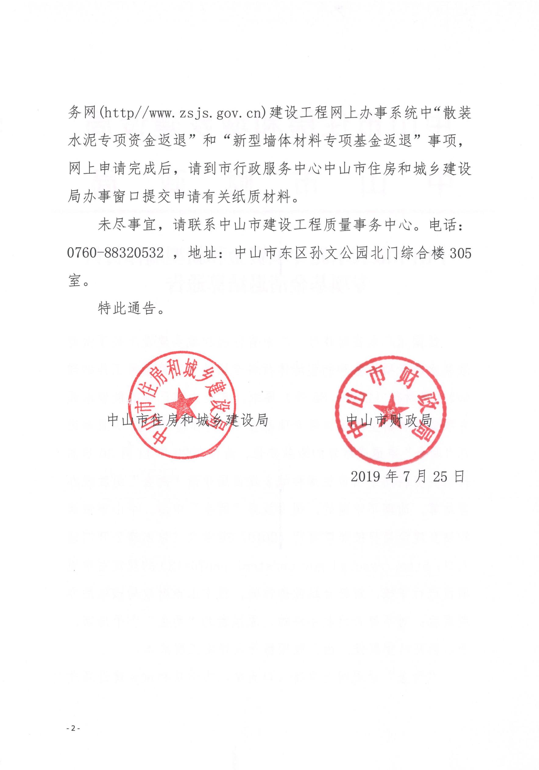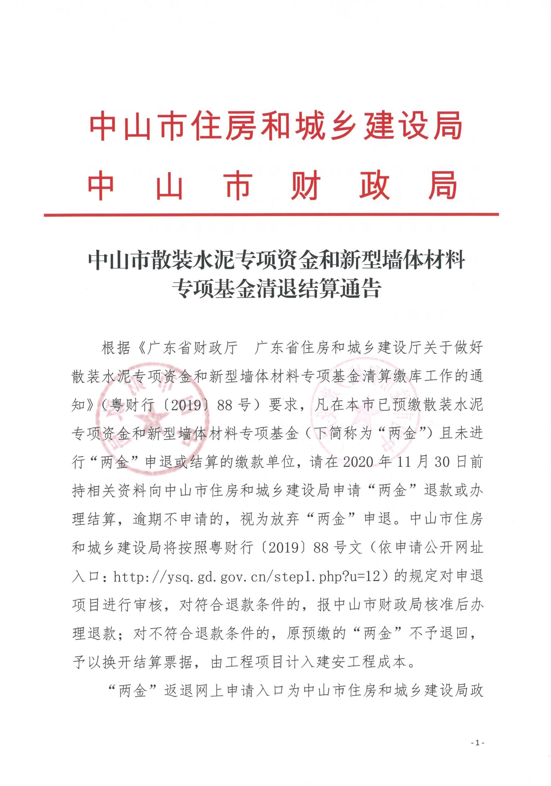 中山市散装水泥专项资金和新型墙体材料专项基金清退结算通告